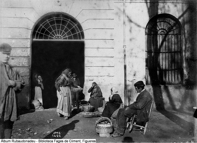 49. Figueres. Porta de la peixateria i venedors de peix