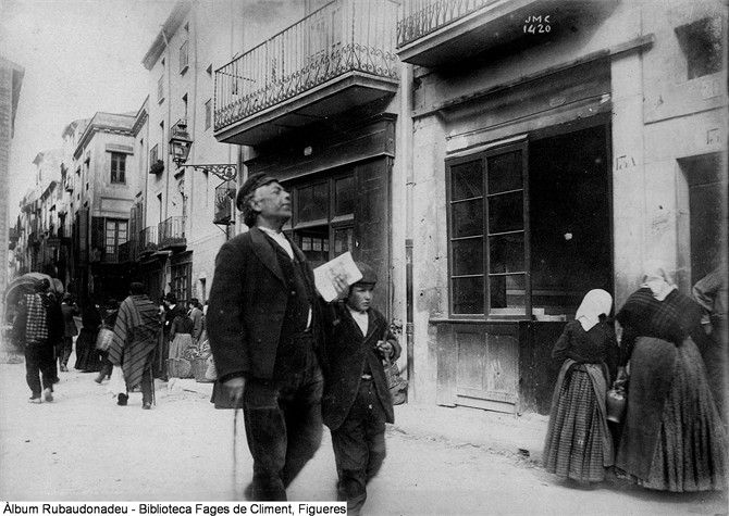 Figueras. Ciego vendiendo impresos, Plaza Constitución